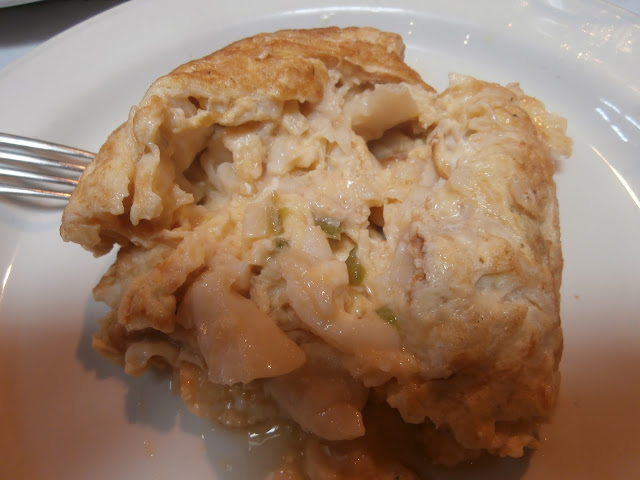 Después de volver a la realidad y terminar de evadir la mente en todas aquellas historias, que las paredes de este asador nos contaban de una manera indirecta, nuestro camarero nos recomendó fuera de carta, un primero al que no le supimos decir que no. Habrá algo aquí, más típico que una jugosa tortilla de bacalao, con ajos tiernos? Creo que nadie es capaz de rechazar tan suculento envite y os puedo asegurar que la elección fue plenamente acertada.