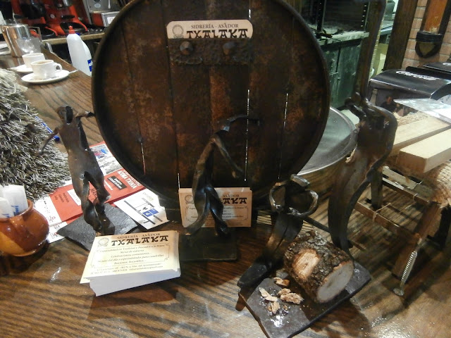 Nada más entrar por la puerta del restaurante, ya pudimos percibir una decoración típica de la cultura del país vasco, ciertamente rústica. Al adentrarse unos pocos metros, este asador cuenta con un amplio salón, con varias mesas largas paralelas, dispuesta como si de una cantina se tratara y que incluso me afloraron al recuerdo, aquellos banquetes populares sin intimidad en los que la mesa es de todos y que cada uno se busque su silla.